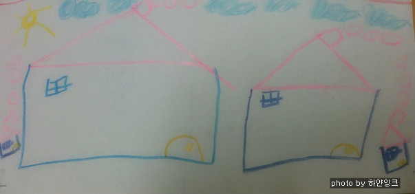 "하나는 아빠집이고 하나는 엄마집, 나랑 동생집도 그렸어"